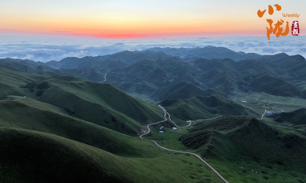 大雨過后,波瀾壯闊的云海層層疊疊,猶如萬馬奔騰,時而風(fēng)平浪靜,浩如煙海;時而沒過山間,猶如涌動的潮水;時而悄悄褪去,猶如飄動的面紗,宛若人間仙境。