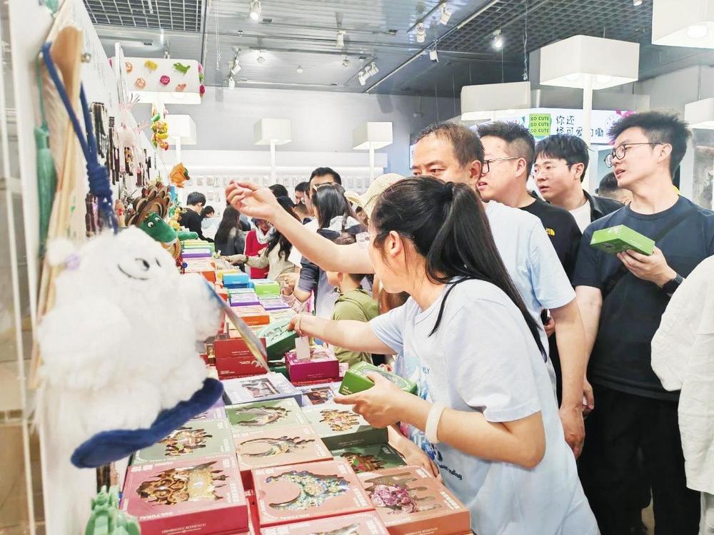 購買文創(chuàng)的游客絡(luò)繹不絕。