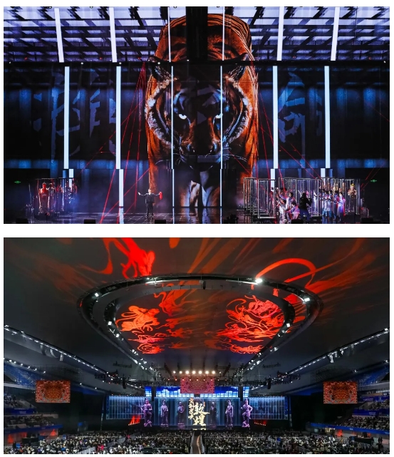 該劇最大的亮點(diǎn)在于創(chuàng)新性藝術(shù)融合,將非遺、科技、禪意、潮流、AI融入先鋒音樂(lè)話劇,打破傳統(tǒng)觀演模式和傳統(tǒng)舞臺(tái)結(jié)構(gòu),巧妙植入演唱會(huì)、音樂(lè)劇、話劇、舞劇甚至是電影多種藝術(shù)表現(xiàn)形式,通過(guò)人工智能、影視化、動(dòng)畫真人融合等最新科技賦能舞臺(tái),實(shí)現(xiàn)“戲劇+影視+Live”多種藝術(shù)場(chǎng)域的融合,“創(chuàng)造”了既現(xiàn)代又滿載中國(guó)審美的“敦煌”空間,讓觀眾沉浸體驗(yàn)敦煌文化的輝煌與魅力。