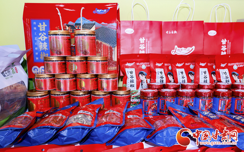 記者在“甘味”展館看到,甘谷辣椒展位前人頭攢動,熱鬧非凡。展位上,一排排包裝精美的甘谷辣椒產(chǎn)品整齊擺放,辣椒絲、辣椒面、辣椒段、辣椒串、油潑辣子以及多款辣椒禮盒琳瑯滿目,吸引了眾多消費者的目光。
