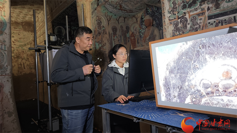 敦煌研究院研究數(shù)字敦煌資深攝影師喬兆福和同事就在敦煌拍壁畫,留下千年壁畫色彩,匯聚數(shù)字洞窟資料。