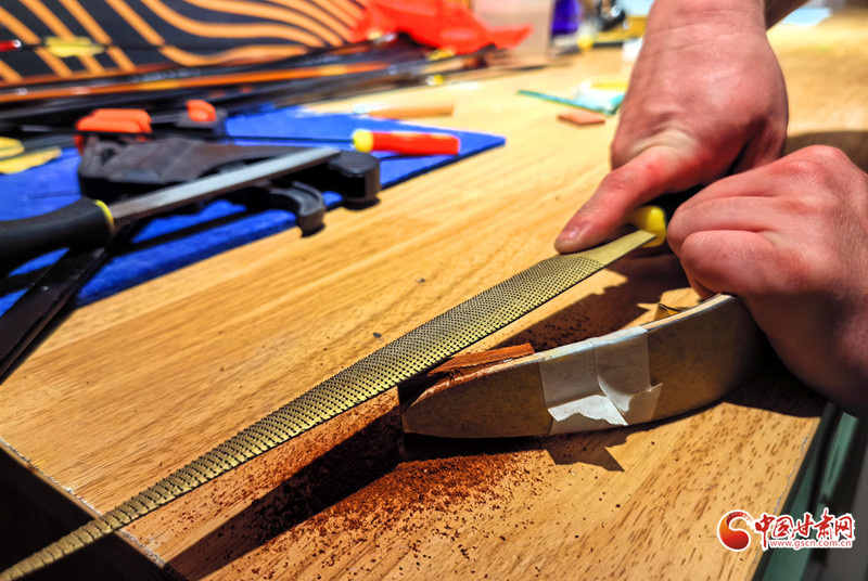 2011年,還是大學生的謝建戈在百度貼吧結(jié)識了山東臨沂“高氏傳統(tǒng)弓箭”非遺傳承人高超。囊中羞澀的他提出“先貨后款”,高超被這份赤誠打動,寄來第一套玻片弓料。一個月后,生活費一到賬,他第一時間把錢打了過去——網(wǎng)絡那端的高超從此記住了這個甘肅小伙。2012年,他做出人生第一把玻片弓。