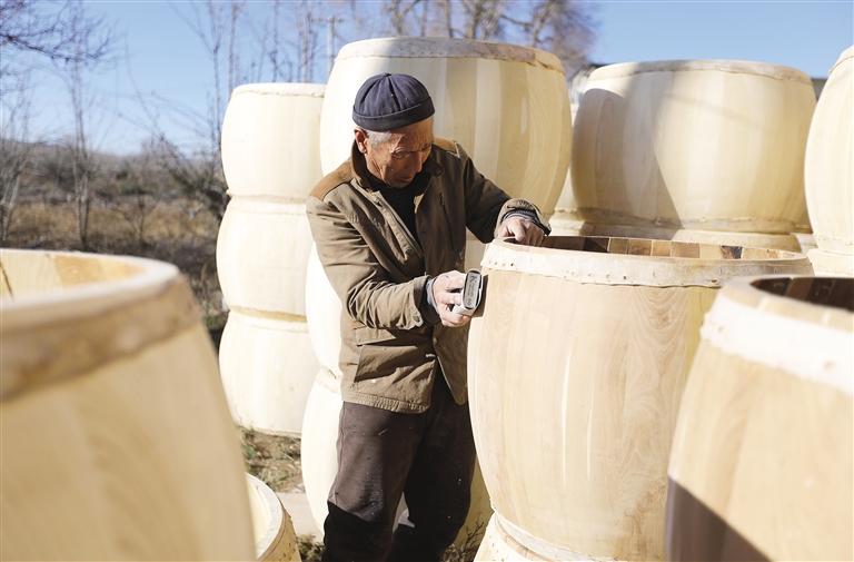冬日農(nóng)閑時節(jié),在甘肅省定西市安定區(qū)鳳翔鎮(zhèn)北廿鋪村,牛皮鼓手工制作藝人利用晴好天氣趕制訂單牛皮鼓,供應(yīng)市場。該村每年可制作各類牛皮鼓3000余面,牛皮鼓手工制作涵蓋選材、解板、刨制鼓腔、蒙皮、釘釘?shù)榷嗟拦ば?,再?jīng)數(shù)天晾曬和反復調(diào)試才能最終制成。牛皮鼓是我國的傳統(tǒng)打擊樂器,在西北地區(qū)用于民間社火表演等活動。