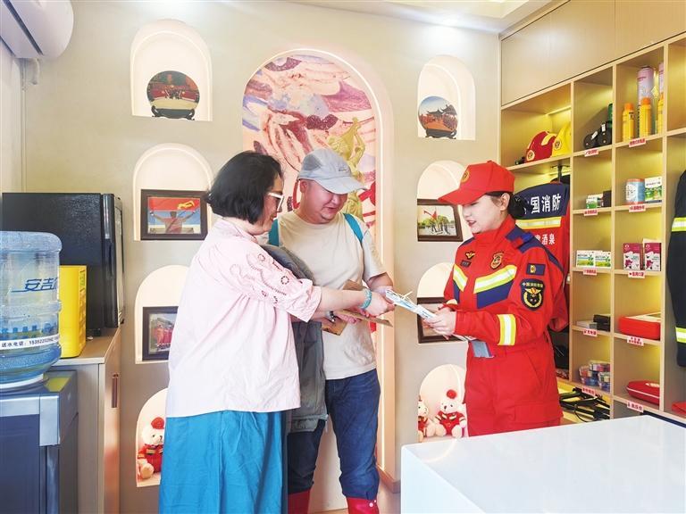 敦煌市消防救援大隊“九色鹿”女子服務(wù)隊在鳴沙山月牙泉景區(qū)開展消防安全宣傳活動。