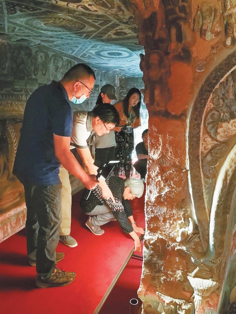 考古報(bào)告此前多年難以出爐還與技術(shù)條件不成熟有關(guān)。“最早的時(shí)候,我們誰見過電腦呀,繪圖用的是‘小平板’,測(cè)量用的是垂球、三角板。測(cè)量的人爬上爬下,繪圖的人說往左往右……又慢又不準(zhǔn)。洞窟不像我們住的房子那么四四方方,洞窟里不是壁畫就是塑像,又不能搬動(dòng),測(cè)量先就是個(gè)大難題。”直到近些年,三維激光掃描測(cè)量?jī)x器問世、高精度數(shù)據(jù)采集、數(shù)字?jǐn)z影、用電腦軟件精確繪圖等技術(shù)成熟,才使全面、高效、非接觸地獲取洞窟三維數(shù)據(jù)、高清圖像并進(jìn)行虛擬拼合與重建成為可能。