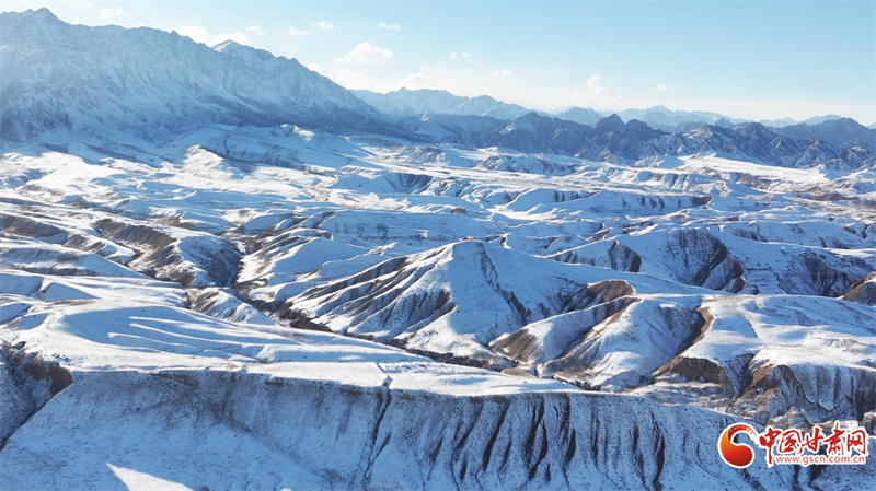 時(shí)下,位于民樂縣境內(nèi)的祁連山脈巍峨群峰被皚皚白雪覆蓋,蔚為壯觀。