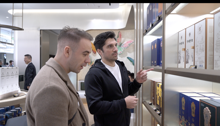除了眾多國際知名品牌外,人氣潮玩周邊和福州特色文創(chuàng)產品柜臺人氣最高。來自中東的網紅達人Zein說,他看到了很多手工的非遺工藝品,如軟木畫、脫胎漆器,這些精巧的非遺技藝讓他震驚。