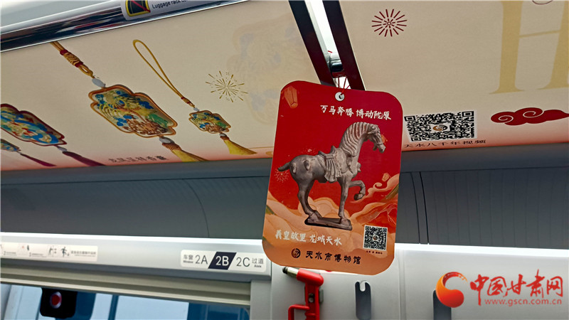 蘭州市博物館、天水市博物館、武威市博物館、平?jīng)鍪胁┪镳^、臨夏州彩陶館(州博物館)、和政古動(dòng)物化石博物館的專屬車廂,也各展特色,將自身文化與文物故事融入空間設(shè)計(jì)。