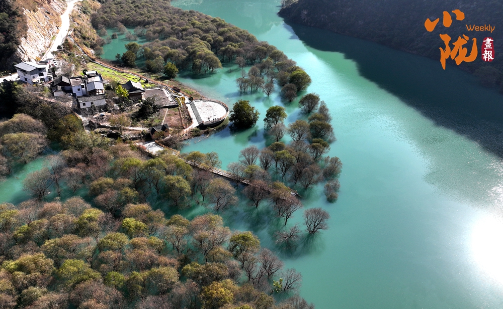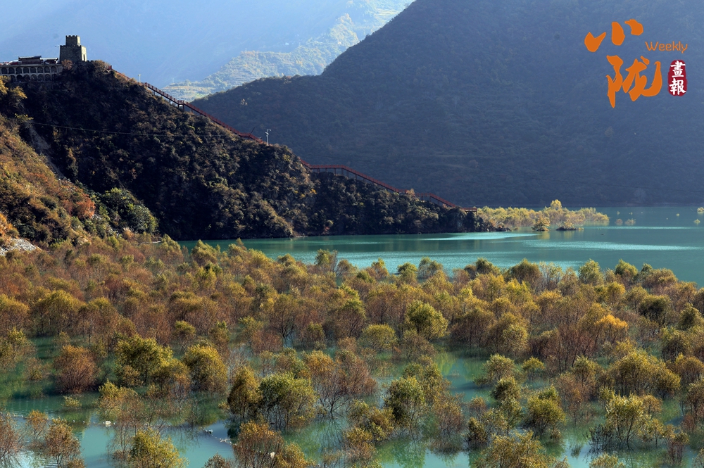 白龍江湍急的流速在此悄然蛻變?yōu)橐粸硿赝竦谋滩ǎ娉纬喝珑R,映照出如江南般清淺而纏綿的景致。