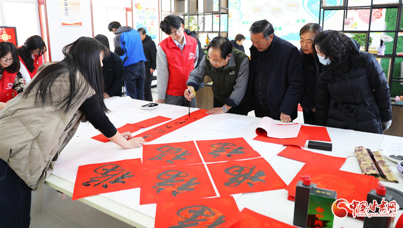 春節(jié)臨近,民樂縣組織群眾文化志愿者服務(wù)隊(duì)開展“翰墨迎春”公益文化活動,志愿者現(xiàn)場揮毫潑墨書寫春聯(lián),為群眾書寫春聯(lián)和“福”字,讓群眾在家門口享受“文化大餐”,迎接新春佳節(jié)的到來。