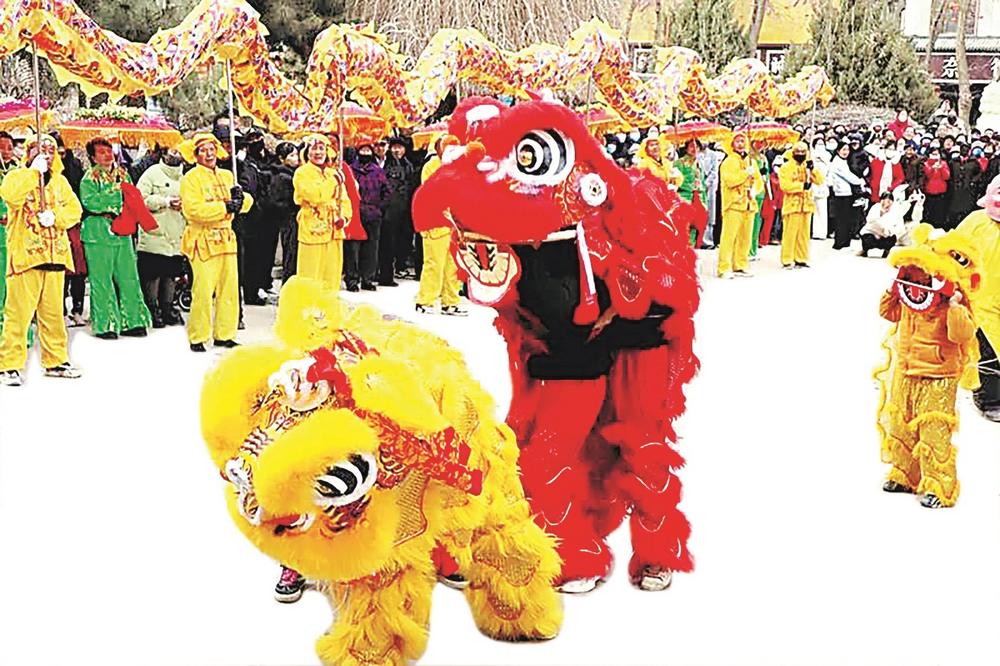 隨著鼓點(diǎn)愈發(fā)急促,廣場上頓時(shí)沸騰起來。舞獅一躍而起,時(shí)而翻滾、時(shí)而嬉戲;秧歌隊(duì)踩著碎步徐徐前行,扇子與花燈舞動(dòng)出五彩斑斕的弧線。鑼鼓手們節(jié)奏分明,鏗鏘之聲震得人心里發(fā)燙。圍觀的群眾里三層外三層,孩子們騎在父親肩頭,老人瞇眼含笑,年輕人舉著手機(jī)不住地按快門。一位村民擠在人群中高聲喝彩:“這才叫過年!”